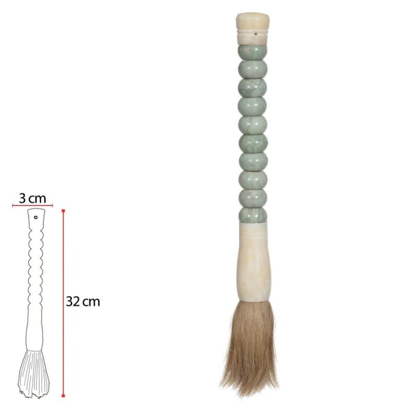 Pincel decorativo com cabo de pedra verde menta com branco.
