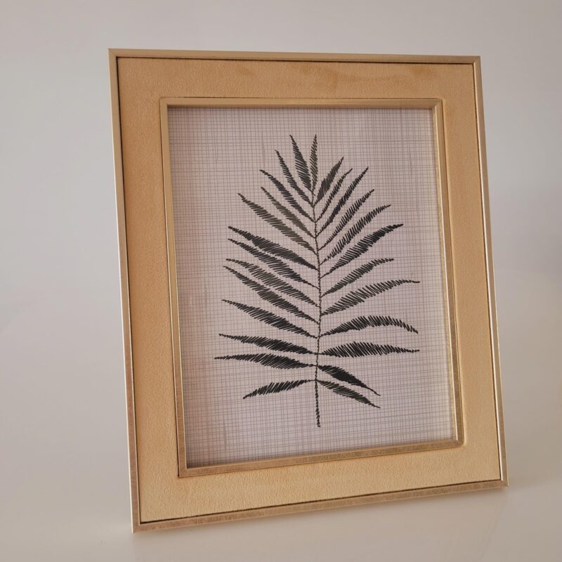 Porta retrato em MDF dourado, com detalhe em veludo bege. Para fotografia 20 x 25cm.
