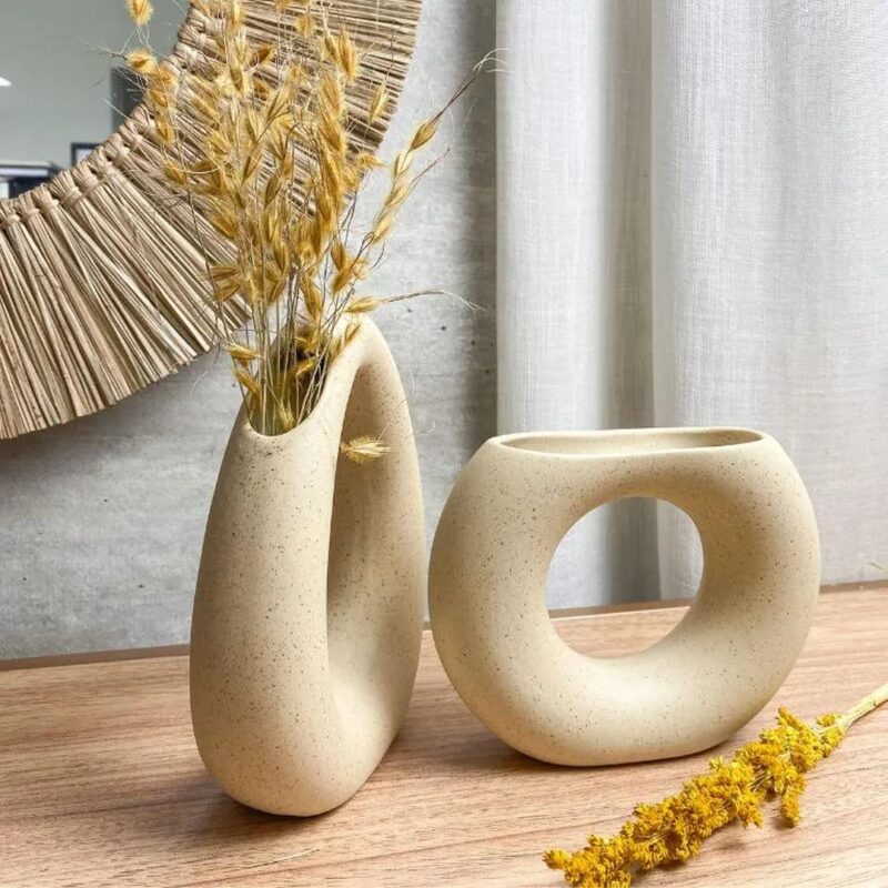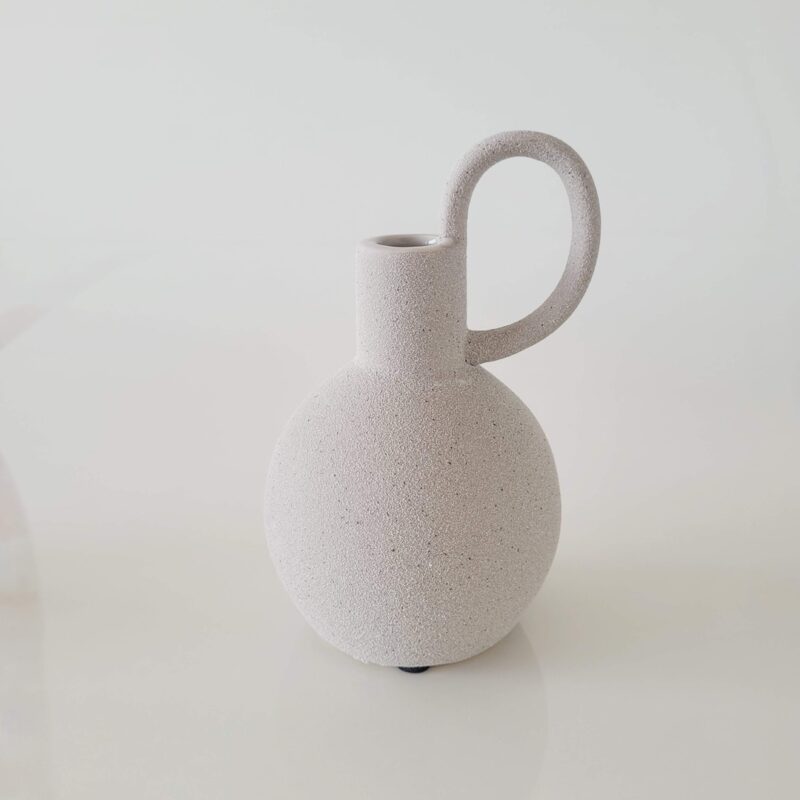 Vaso de cerâmica, estilo jarro, texturizado como areia, na cor off white.