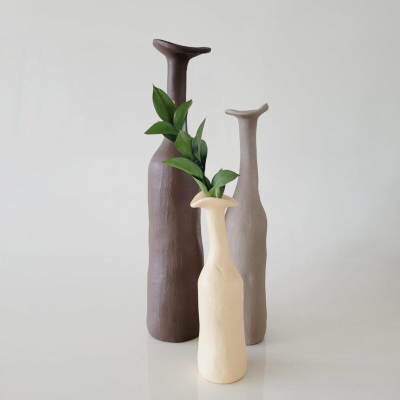 Vaso decorativo de resina modelo Duo Indiano, na cor bege (capuccino).