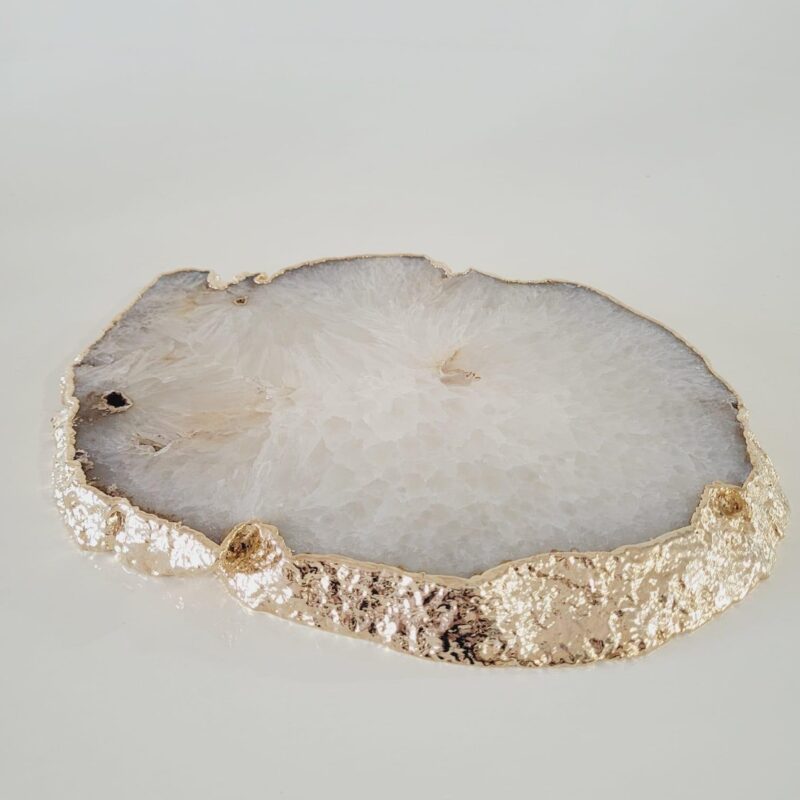 Bandeja decorativa em metal retangular, em alumínio na cor dourado, com espelho.