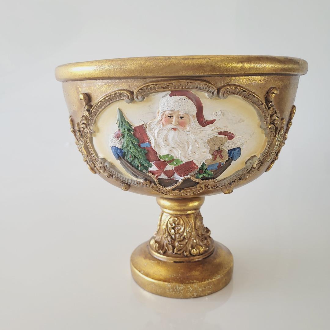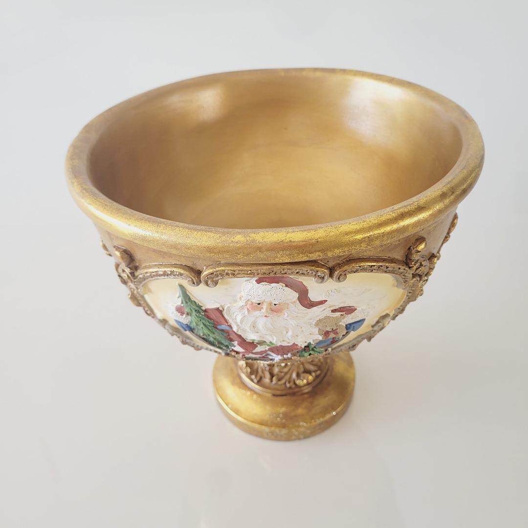 Centro de mesa de Natal dourado com Papai Noel.