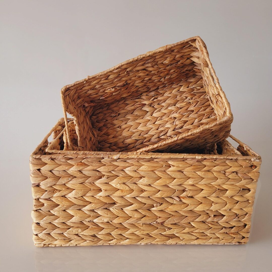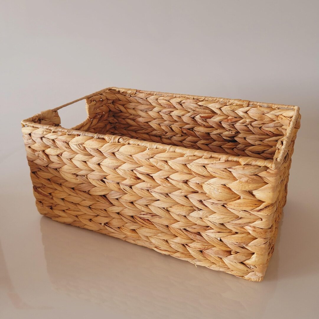 Cesto em fibra natural Seagrass retangular com alças e estrutura G