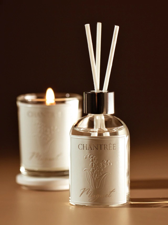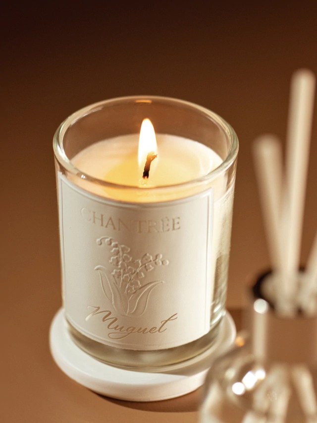 Vela perfumada 55g. As velas perfumadas Chantrêe são elaboradas com cera natural de damasco, coco e palma, o que proporciona uma queima limpa, livre de resíduos tóxicos e com muito perfume.