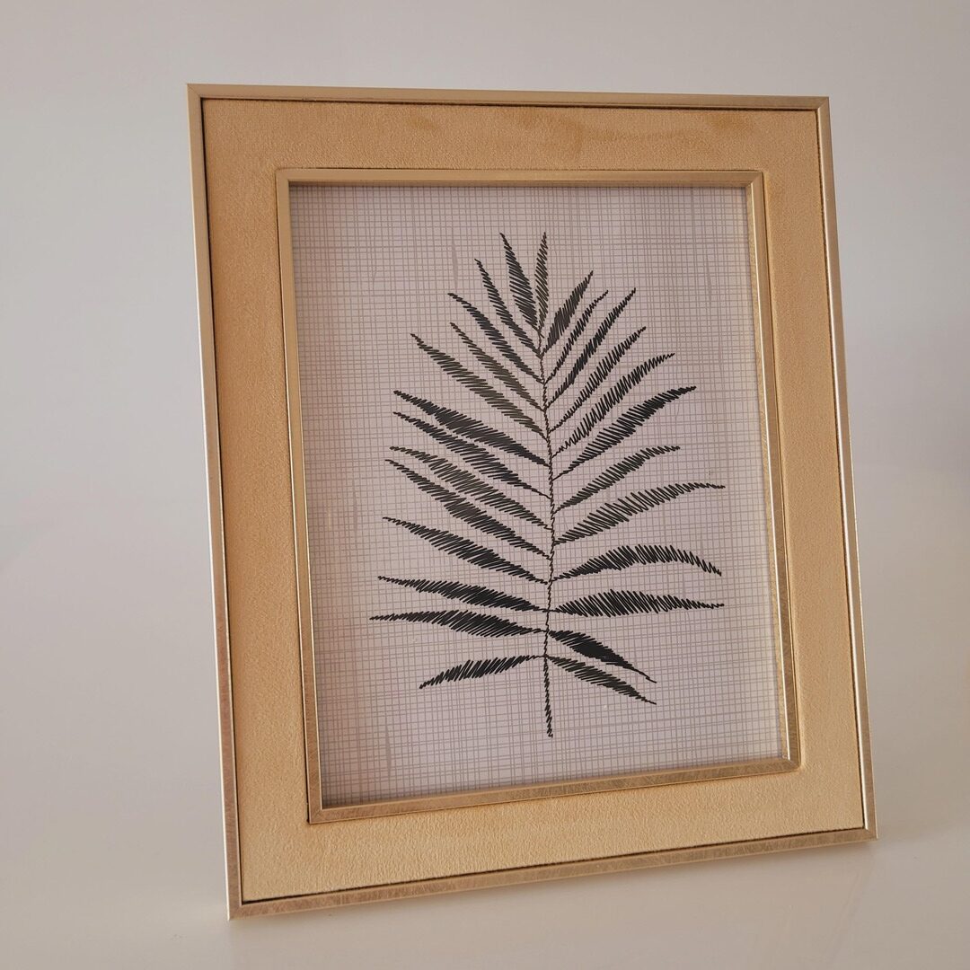 Porta retrato de MDF com veludo bege e dourado M (15×20)