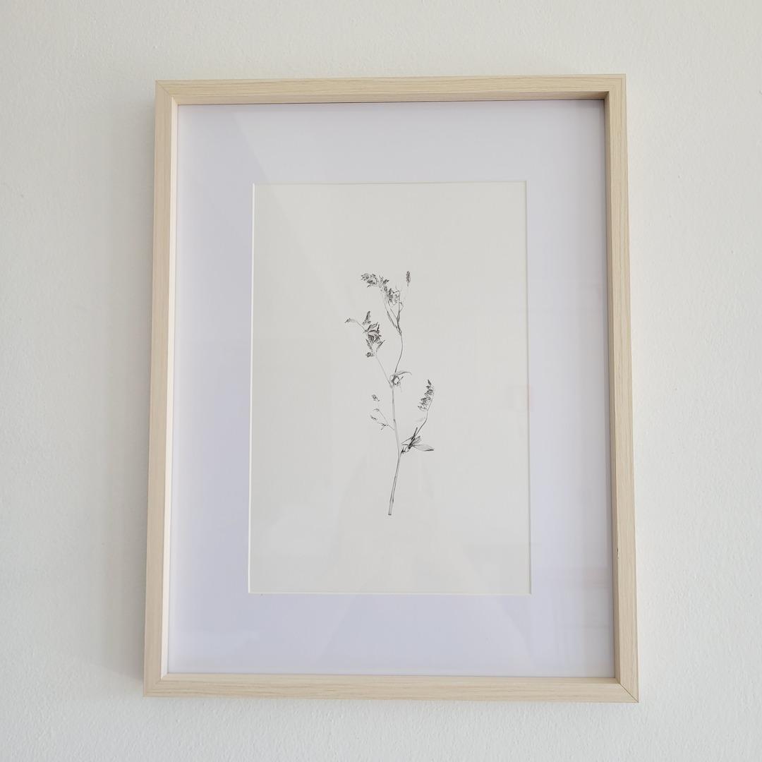 Quadro com moldura e estrutura em MDF, vidro na frente e ilustração de planta.