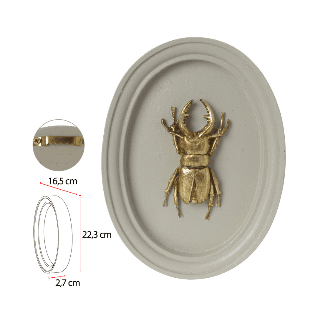 Quadro decorativo em resina, besouro dourado e base fendi.