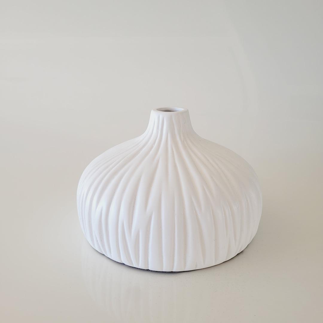 Vaso de cerâmica Wave baixo textura riscada branco fosco 12xØ18