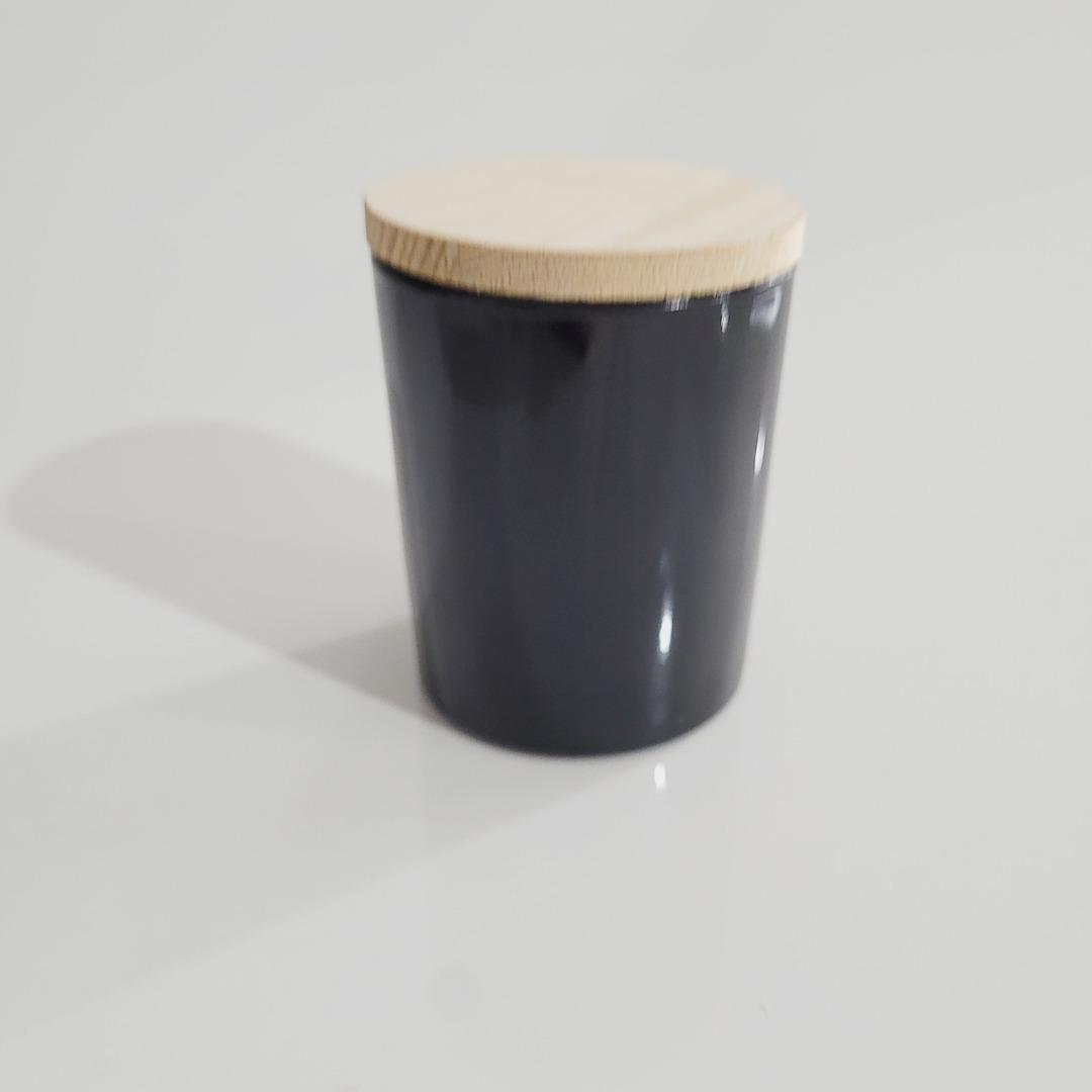 Vela aromática com tampa madeira e suporte de vidro preto 8xØ6,5